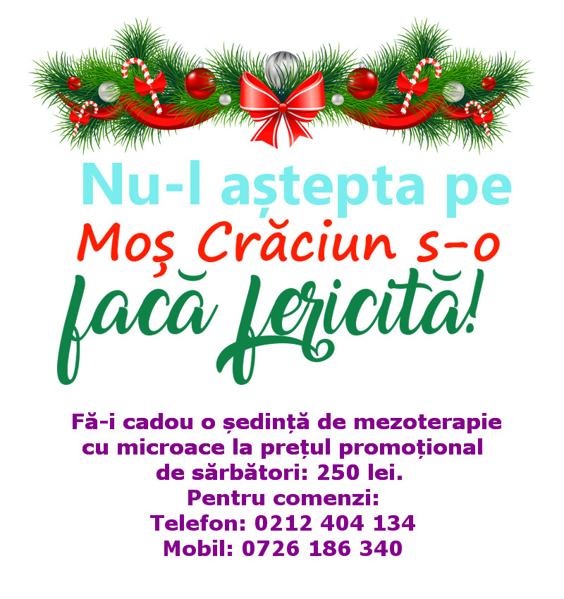 Promotie Sarbatori: Mezoterapie cu Microace December 7, 2018 Posted by Mihaela.Stoian in Blog 772 mezoterapie cu microace
